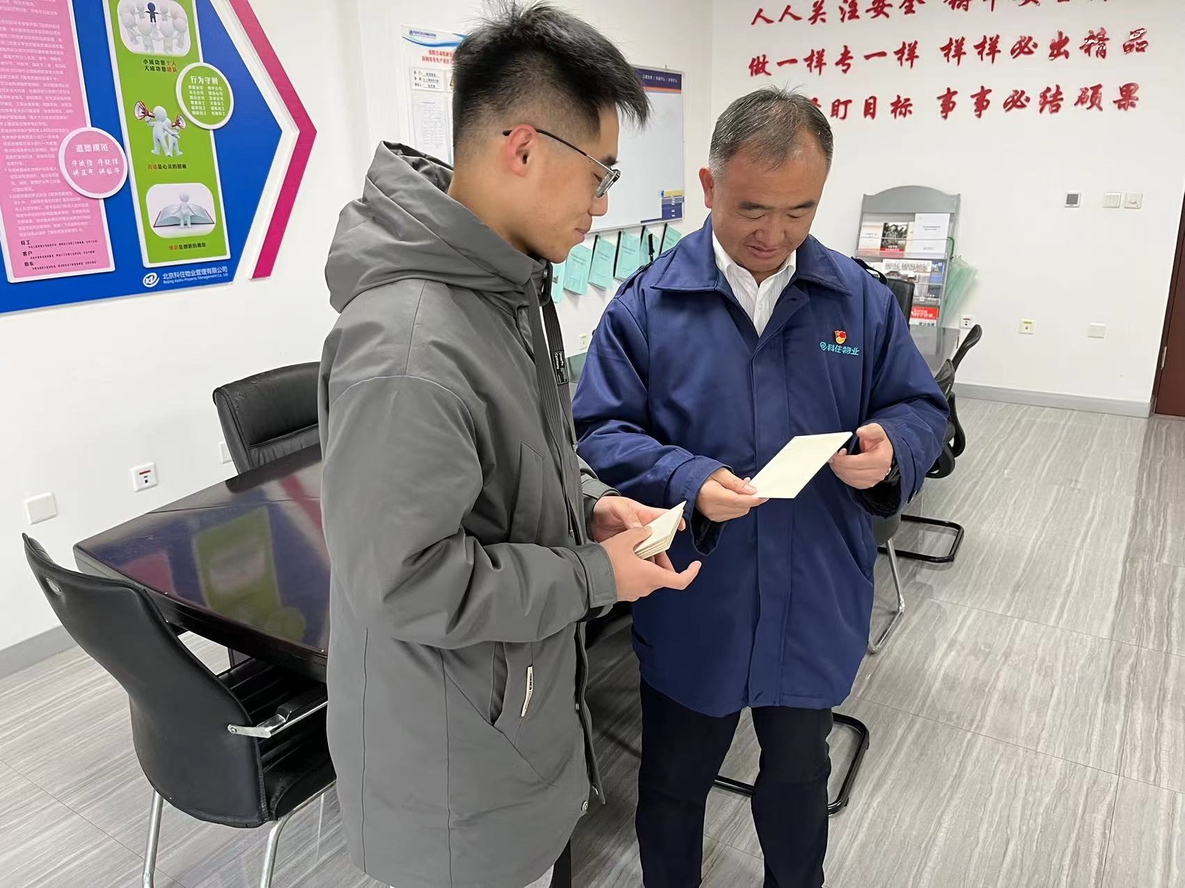 志愿者向工作人員贈(zèng)送致謝賀卡