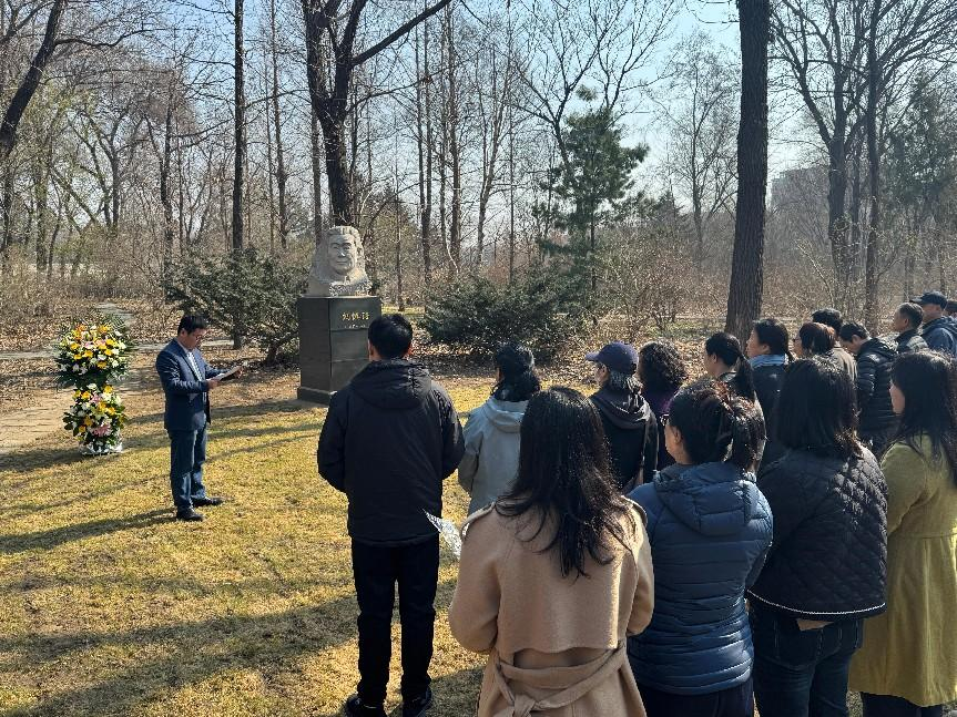 最后,金昌杰作總結(jié)講話,他指出,沈陽生態(tài)所組織清明瞻仰劉慎諤先生雕像活動(dòng),是傳承老一輩科學(xué)家精神、弘揚(yáng)“林土精神”的重要舉措。此次活動(dòng)旨在緬懷老一輩科學(xué)家,進(jìn)一步傳承和弘揚(yáng)“林土精神”,激勵(lì)后人努力搶占“應(yīng)用生態(tài)學(xué)領(lǐng)域”科技制高點(diǎn)。他希望全所干部職工和研究生深入了解劉老的生平事跡和科研成就,深刻感受劉老的精神風(fēng)貌,并將這種科學(xué)家精神傳承下去。他鼓勵(lì)大家學(xué)習(xí)劉老無私奉獻(xiàn)的報(bào)國(guó)情懷、一絲不茍的治學(xué)態(tài)度以及甘為人梯、獎(jiǎng)掖后學(xué)的育人精神。他號(hào)召全所干部職工、研究生繼續(xù)大力傳承和發(fā)揚(yáng)“林土精神”,弘揚(yáng)新時(shí)代科學(xué)家精神,自覺肩負(fù)起科技報(bào)國(guó)的職責(zé)使命,聚焦“四個(gè)率先”和“兩加快一努力”目標(biāo)要求,緊扣生態(tài)文明建設(shè)國(guó)家戰(zhàn)略科技力量主力軍使命定位,努力搶占科技制高點(diǎn),深入推進(jìn)黨建與科技創(chuàng)新雙融雙促,奮力開創(chuàng)研究所改革創(chuàng)新發(fā)展新局面。