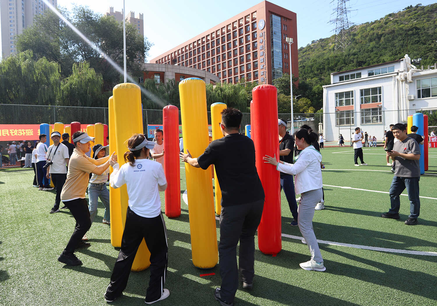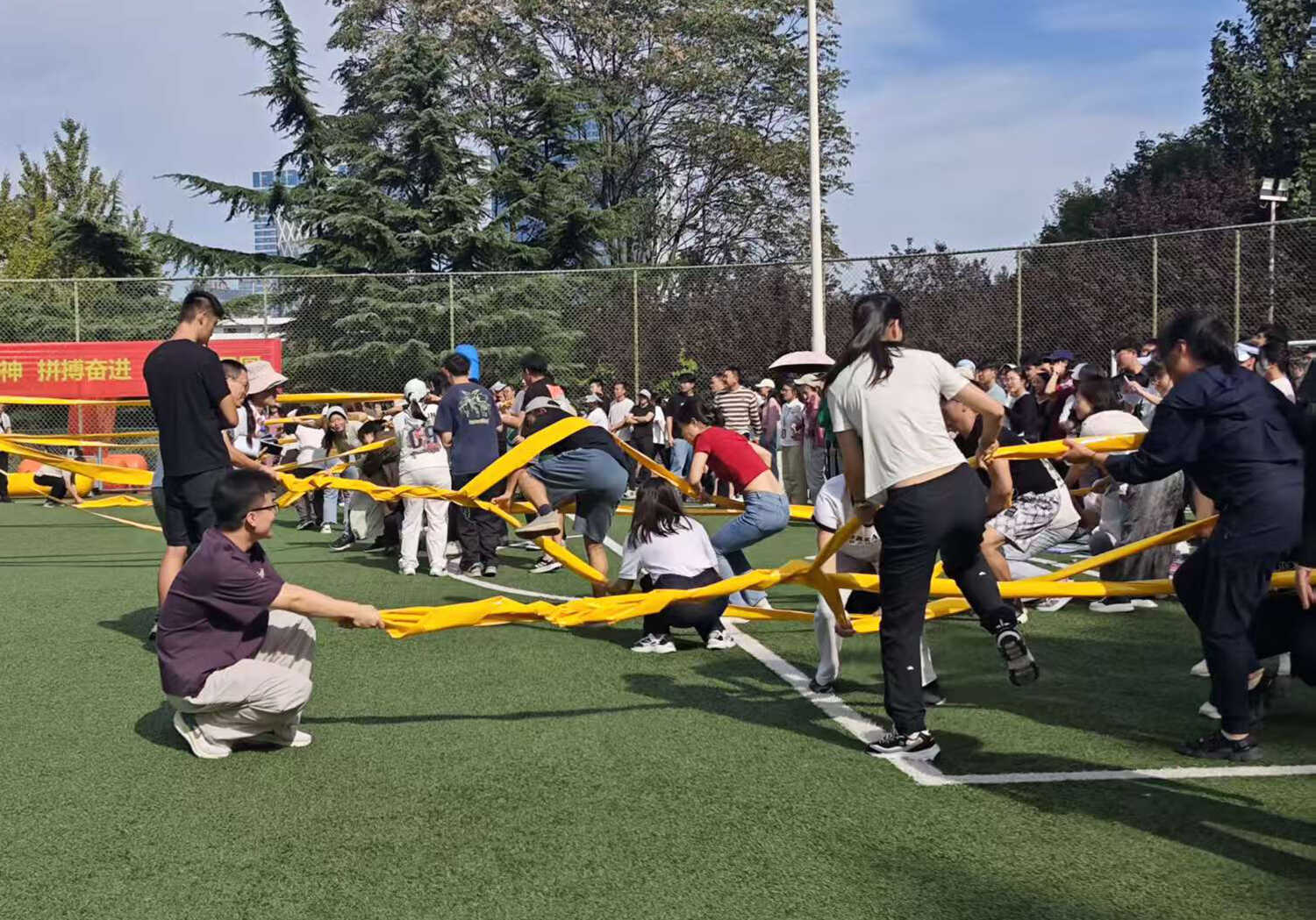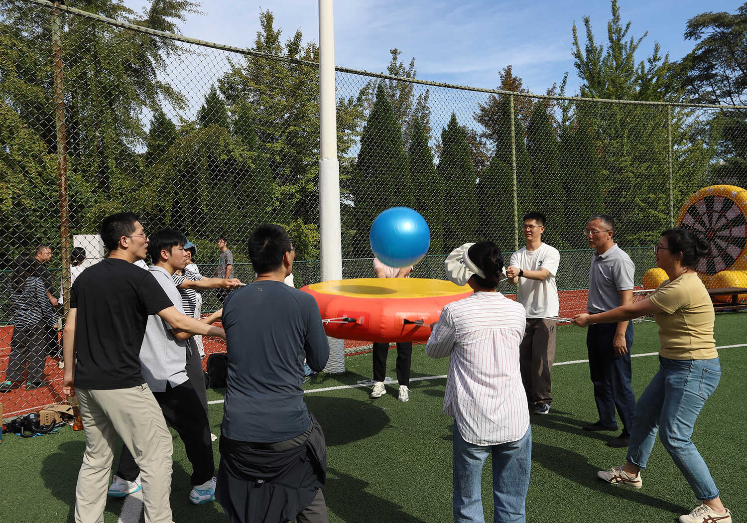 賽事活動分別在A、B兩個場地同時火熱開賽,其中A場地以團體賽為主,B場地以個人賽為主。本次活動精心設(shè)置了集競技性、協(xié)作性與趣味性于一體的“齊心協(xié)力”“開心麻花”等9個項目,吸引了19支隊伍(聯(lián)隊)參與,涵蓋科研、職能部門的老中青職工和研究生。賽場上,運動員們?nèi)橥度?,團結(jié)協(xié)作,為團隊榮譽奮力拼搏;賽場邊,觀眾們的加油聲、歡呼聲、笑聲此起彼伏,整個運動場沉浸在一片歡樂、熱烈、奮進的海洋中。經(jīng)過半天的激烈角逐,各項賽事圓滿結(jié)束。