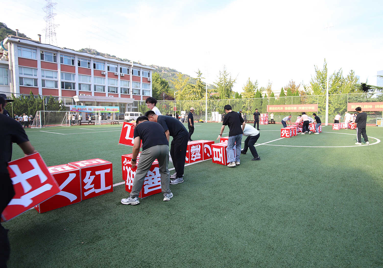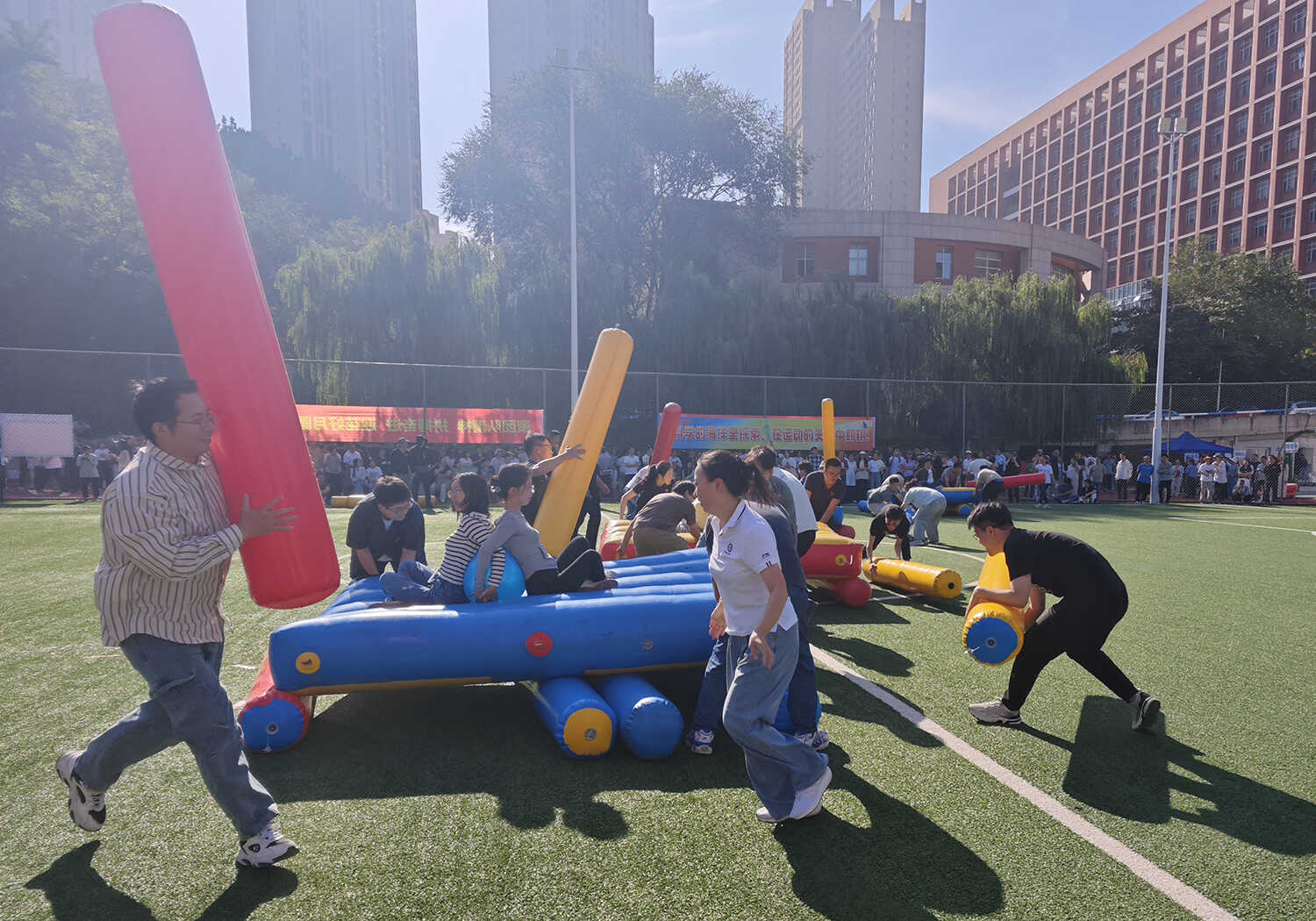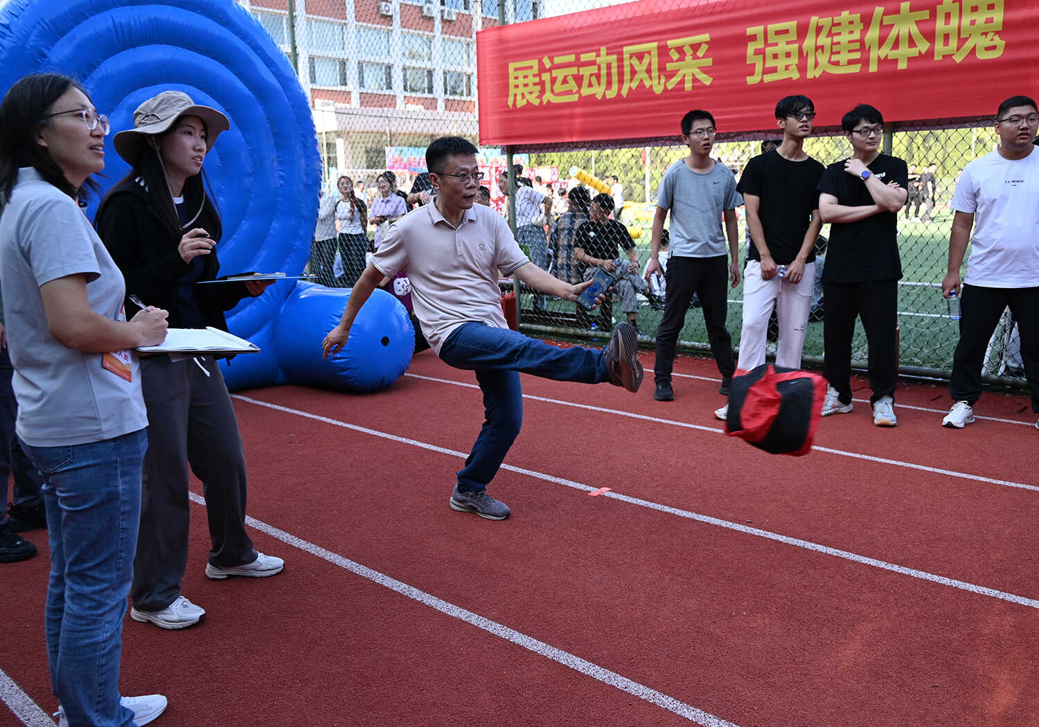 賽事活動分別在A、B兩個場地同時火熱開賽,其中A場地以團體賽為主,B場地以個人賽為主。本次活動精心設(shè)置了集競技性、協(xié)作性與趣味性于一體的“齊心協(xié)力”“開心麻花”等9個項目,吸引了19支隊伍(聯(lián)隊)參與,涵蓋科研、職能部門的老中青職工和研究生。賽場上,運動員們?nèi)橥度?,團結(jié)協(xié)作,為團隊榮譽奮力拼搏;賽場邊,觀眾們的加油聲、歡呼聲、笑聲此起彼伏,整個運動場沉浸在一片歡樂、熱烈、奮進的海洋中。經(jīng)過半天的激烈角逐,各項賽事圓滿結(jié)束。