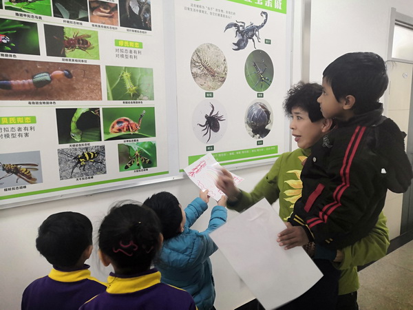 在“科普展覽”環(huán)節(jié)中,通過對東北生物標本館的參觀,讓孩子們親身接觸和了解昆蟲和植物的生長變化,了解了由花至果的生長變化是如何發(fā)生的。