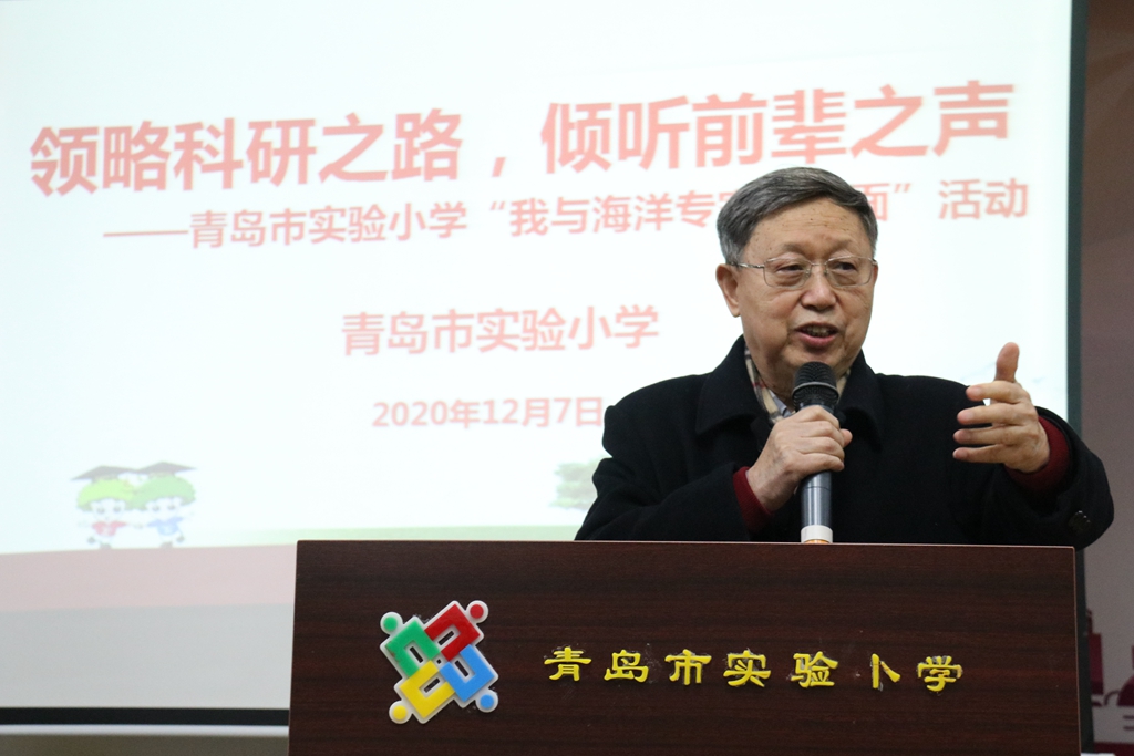 12月7日,海洋所胡敦欣院士、海洋所青促會(huì)會(huì)長(zhǎng)胡石建研究員應(yīng)邀赴青島市實(shí)驗(yàn)小學(xué)開展海洋科普活動(dòng),市實(shí)驗(yàn)小學(xué)校長(zhǎng)梁景萱、副校長(zhǎng)胡繁華及百余名師生現(xiàn)場(chǎng)參與活動(dòng)。