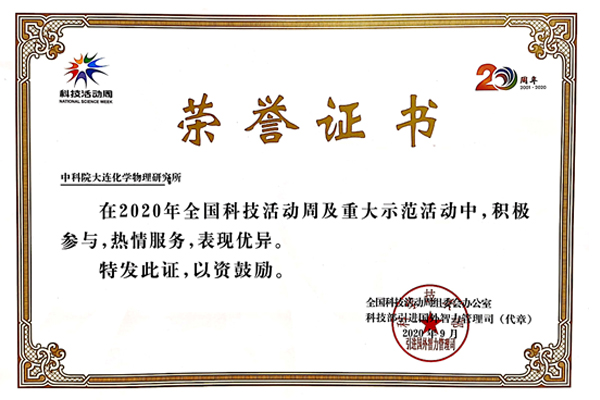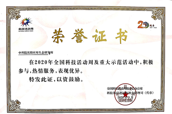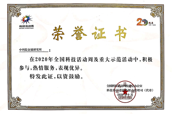 日前,全國科技活動(dòng)周組委會(huì)辦公室、科技部引進(jìn)國外智力管理司頒發(fā)榮譽(yù)證書,表彰在2020年全國科技活動(dòng)周及重大示范活動(dòng)中,積極參與,熱情服務(wù),表現(xiàn)優(yōu)異的單位。中科院大連化學(xué)物理研究所、中科院金屬研究所、中科院沈陽應(yīng)用生態(tài)研究所、中科院沈陽自動(dòng)化研究所獲此殊榮。