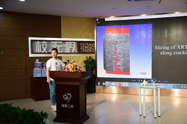 本次活動(dòng)邀請(qǐng)到中科院金屬所師昌緒先進(jìn)材料創(chuàng)新中心材料使役行為研究部碩士生谷瑞成為學(xué)生們帶來(lái)題為“自然為師,仿生材料”的精彩科普?qǐng)?bào)告。谷瑞成通過(guò)通俗易懂的語(yǔ)言向?qū)W生們介紹了眾多有趣的仿生實(shí)例,并從自然界軍備競(jìng)賽的角度帶領(lǐng)大家了解自然、學(xué)習(xí)自然。他還詳細(xì)介紹了自己所在課題組的仿生成果,并通過(guò)現(xiàn)場(chǎng)演示兩個(gè)生動(dòng)的科普實(shí)驗(yàn)讓同學(xué)們更好地理解仿生學(xué)知識(shí),使學(xué)生們進(jìn)一步開(kāi)闊了視野,激發(fā)了濃厚的科學(xué)興趣。