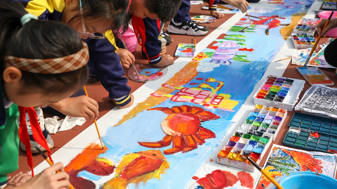 本次活動(dòng)由青島市教育局、青島市科技局、中國科學(xué)院海洋研究所聯(lián)合主辦,青島市少年科學(xué)院、青島中科海印像科技文化有限公司、“耕海探洋”科技科普示范基地共同承辦,來自島城各區(qū)市的120余名中小學(xué)生在百米長卷上現(xiàn)場作畫,共繪心目中的藍(lán)色海洋。