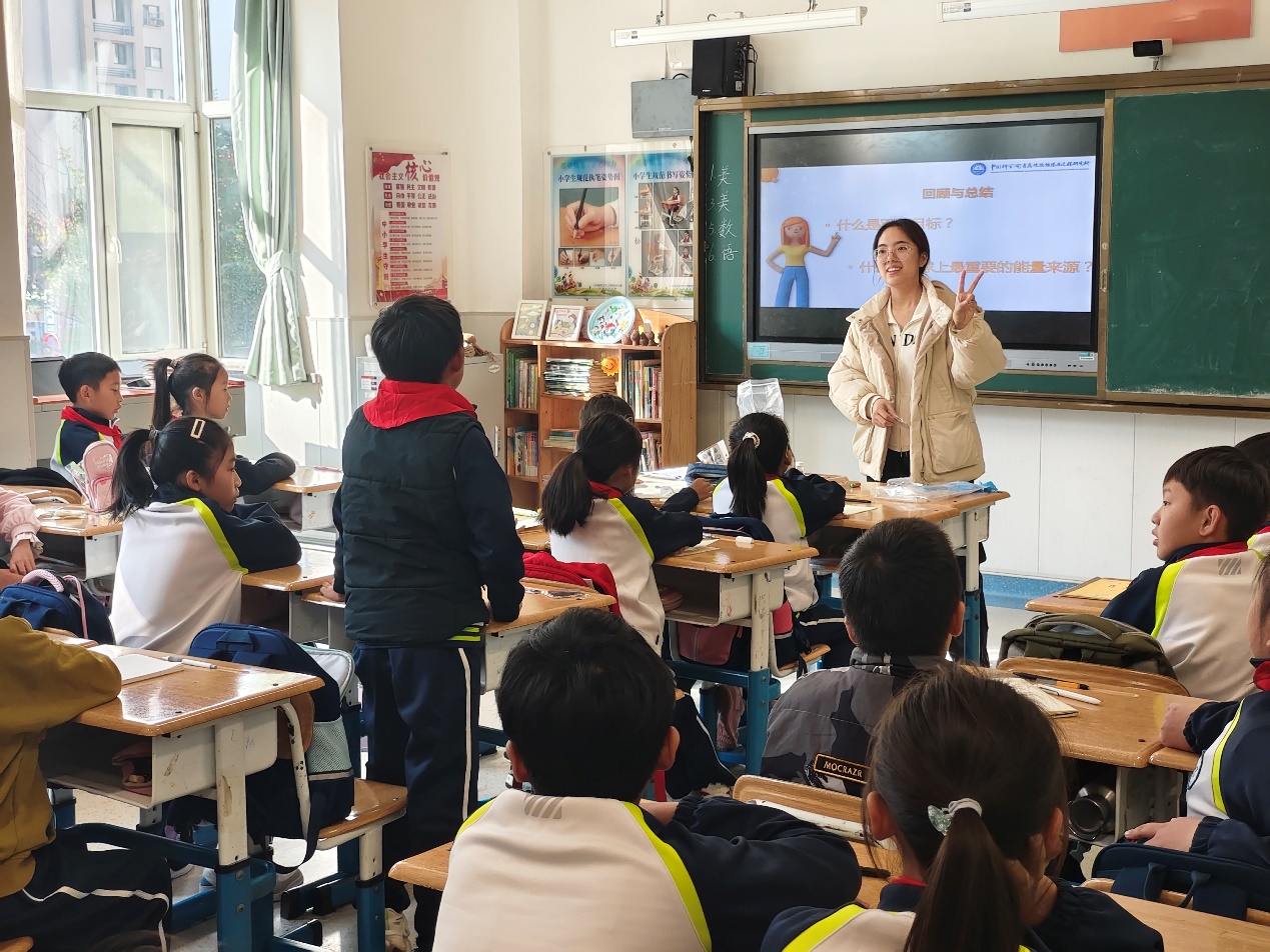 在首個(gè)活動(dòng)日,青島能源所的科普志愿者們分別走進(jìn)青島市嶗山區(qū)第三實(shí)驗(yàn)小學(xué)和青島市嶗山區(qū)實(shí)驗(yàn)學(xué)校,為學(xué)生們帶來了一堂生動(dòng)有趣的科學(xué)課程。在嶗山區(qū)第三實(shí)驗(yàn)小學(xué),固態(tài)能源系統(tǒng)技術(shù)中心的博士研究生陳柏汎以“奇妙的能源世界”為主題,介紹了能源的基本概念、分類、儲(chǔ)存方式;揭示了綠色能源的奧秘,解釋了發(fā)展可再生能源對(duì)實(shí)現(xiàn)“雙碳”目標(biāo)的重要性;并結(jié)合自己的研究領(lǐng)域,重點(diǎn)講述了鋰離子電池的識(shí)別方法和工作原理,同時(shí)展示了科研人員精心制作的液態(tài)扣式鋰離子電池模型,讓學(xué)生們對(duì)儲(chǔ)能科技有了直觀的認(rèn)識(shí)。