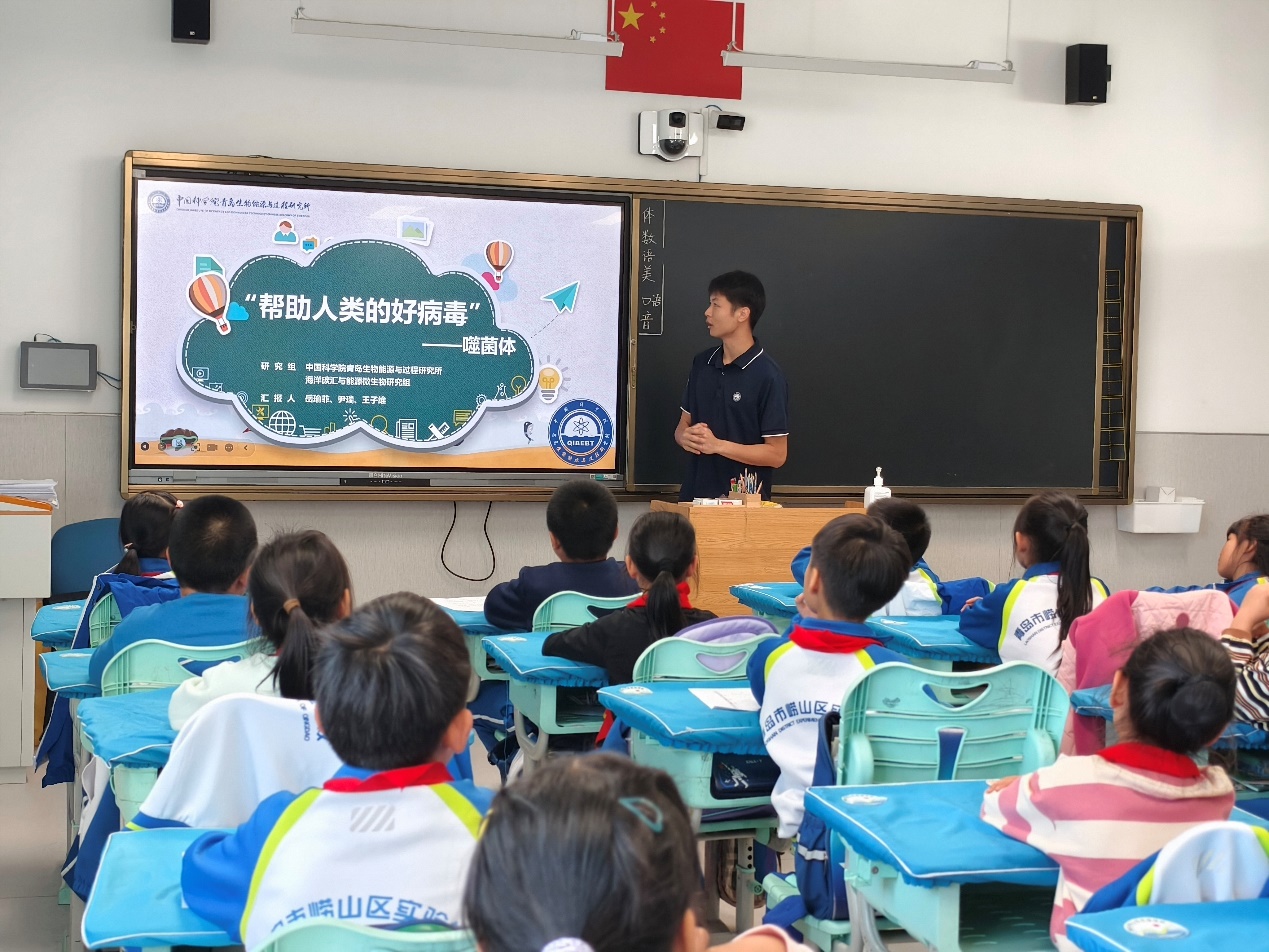在嶗山區(qū)實(shí)驗(yàn)學(xué)校,海洋碳匯與能源微生物研究組的博士生岳瑜菲和王子維,通過生動(dòng)的講解和互動(dòng)實(shí)驗(yàn),向?qū)W生們講述了噬菌體的定義、結(jié)構(gòu)以及它們與細(xì)菌的相互作用機(jī)制,演示了實(shí)驗(yàn)室對(duì)噬菌體培養(yǎng)的操作流程,并介紹了噬菌體在食品保鮮、醫(yī)療治療等領(lǐng)域的實(shí)際應(yīng)用,極大地豐富了學(xué)生們對(duì)這一微生物領(lǐng)域的認(rèn)識(shí)。