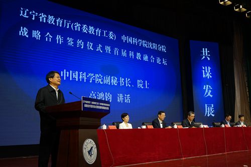 為深入貫徹落實創(chuàng)新驅(qū)動發(fā)展戰(zhàn)略,充分發(fā)揮中國科學(xué)院研究所和高等學(xué)校雙方的優(yōu)勢,推進(jìn)科教融合工作,2019年9月17日,中國科學(xué)院沈陽分院與遼寧省教育廳(省委教育工委)簽署了戰(zhàn)略合作框架協(xié)議,中科院駐遼4家研究所與遼寧省13所高等學(xué)校簽署了26項合作協(xié)議,同時組織開展了遼寧省首屆科教融合論壇。中科院副秘書長、中國科學(xué)院院士高鴻鈞,前沿科學(xué)與教育局副局長王穎,中科院沈陽分院院長韓恩厚,中科院大連化學(xué)物理研究所黨委書記王華,中科院金屬研究所所長左良,中科院沈陽應(yīng)用生態(tài)研究所黨委副書記郝欣,中科院沈陽自動化研究所副所長李碩,教育部科技司副司長檀勤良,遼寧省委常委、省委宣傳部部長、省委教育工委書記張福海,遼寧省人民政府副省長王明玉,遼寧省委教育工委副書記、省教育廳黨組書記、廳長馮守權(quán),副廳長花蕾,以及簽約高校及省內(nèi)各普通本科高校的領(lǐng)導(dǎo)共計100多人參加了會議。