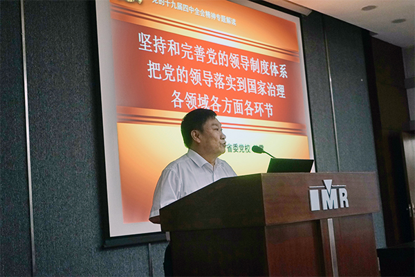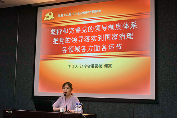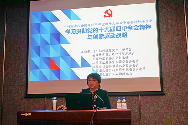 在培訓(xùn)會議上,遼寧省社會科學(xué)院原院長姜曉秋教授作了題為《學(xué)習(xí)貫徹黨的十九屆四中全會精神與創(chuàng)新驅(qū)動戰(zhàn)略》專題報告,遼寧省委黨校儲霞教授作了題為《堅持和完善黨的領(lǐng)導(dǎo)制度體系 把黨的領(lǐng)導(dǎo)落實到國家治理各領(lǐng)域各方面各環(huán)節(jié)》主題報告。報告系統(tǒng)全面地講述了黨的十九屆四中全會的時代背景和重大意義、重點任務(wù)和戰(zhàn)略部署、堅定制度自信與提高治理能力、以及黨的領(lǐng)導(dǎo)制度歷史傳承和堅決落實黨的領(lǐng)導(dǎo)等全會精神的實質(zhì)內(nèi)涵,并號召廣大年輕干部要腳踏實地,以堅定的理想信念和優(yōu)良的思想作風(fēng),不斷推進(jìn)國家科技創(chuàng)新事業(yè)的發(fā)展。
