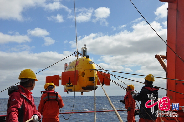 中國網(wǎng)西南印度洋2月19日訊(特派記者葛蕾) 當(dāng)?shù)貢r(shí)間2月14日,海況4級(jí)轉(zhuǎn)3級(jí)。因?yàn)楹r惡劣而等候多日的“潛龍二號(hào)”在風(fēng)浪平息后終于獲得自由,于當(dāng)天早上8點(diǎn)斗志昂揚(yáng)地下海了。
