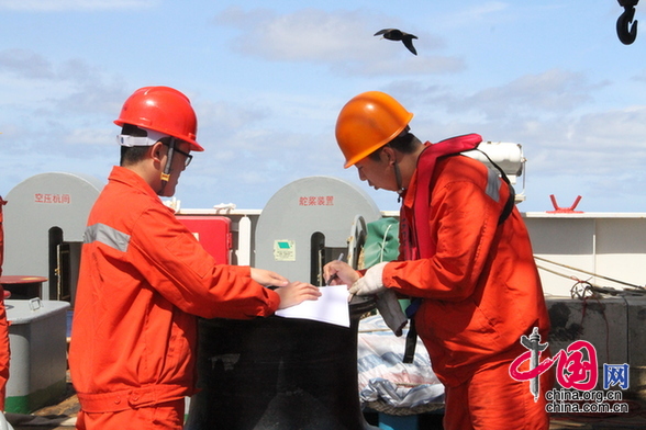王曉飛在大洋40航次“向陽紅10”船上專注工作(攝影 舒珺)
