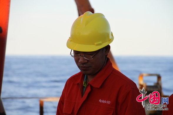 趙宏宇在大洋40航次“向陽(yáng)紅10”船上專(zhuān)注工作(攝影 舒珺)