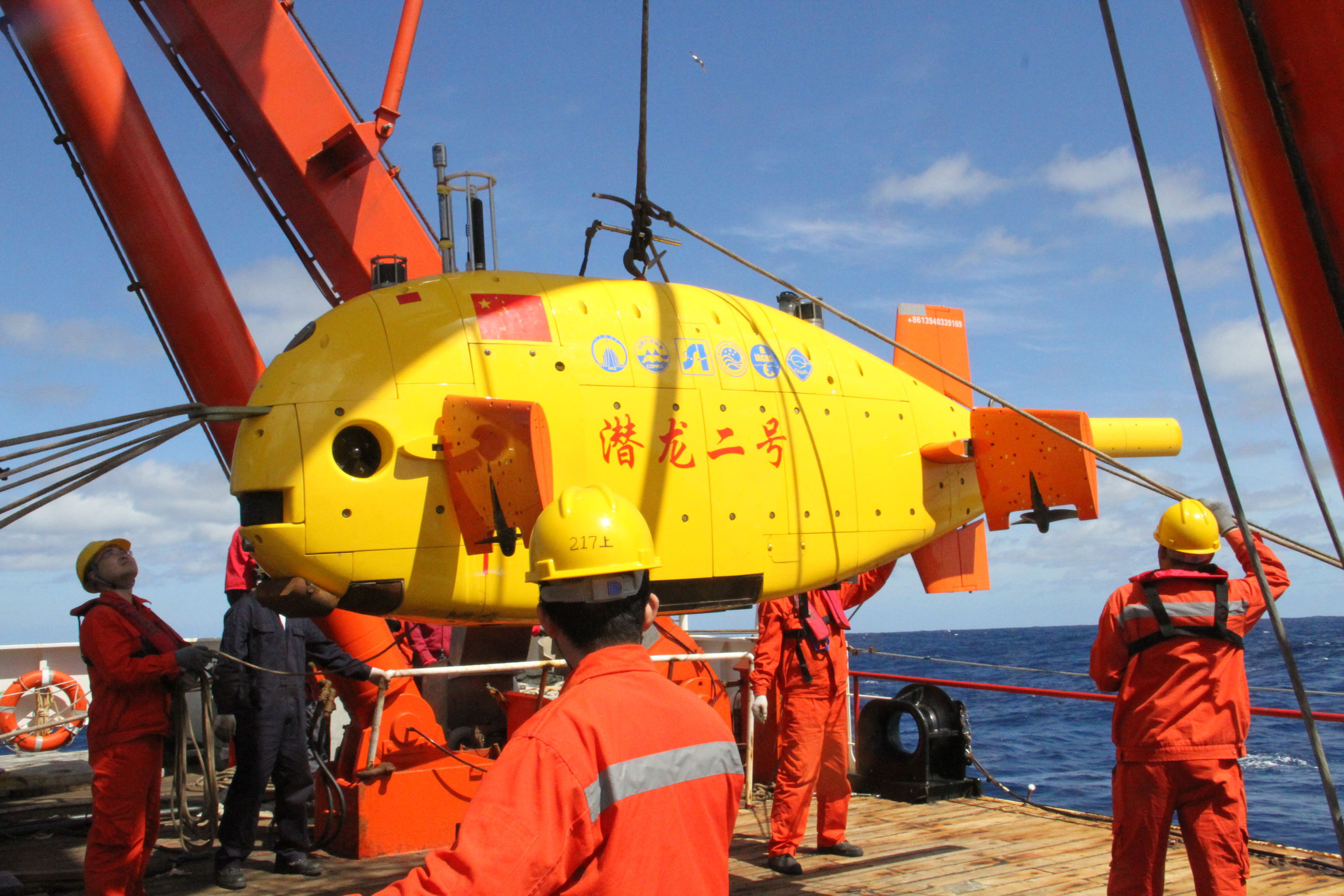 “潛龍二號”自主水下機(jī)器人在進(jìn)行海試回收至甲板