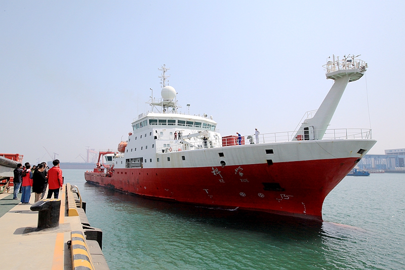 4月19日,“科學(xué)”號(hào)科考船順利返回青島母港