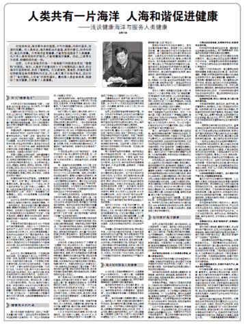 世界上的海洋是連通的,海水是流動的,全人類擁有同一片海洋。海洋是人類命運共同體的依托和支撐。只有全人類共同努力,實現(xiàn)真正意義上的人海和諧,才能真正維護(hù)海洋的健康。也只有健康海洋,才能真正把可持續(xù)的資源和空間奉獻(xiàn)給當(dāng)今人類,才能真正促進(jìn)人類健康。