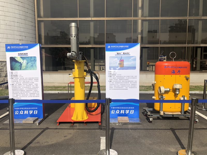 “海斗”號萬米級自主水下機器人和深海液壓機械手系統(tǒng)實物首次與公眾見面。中科院沈陽自動化研究所供圖