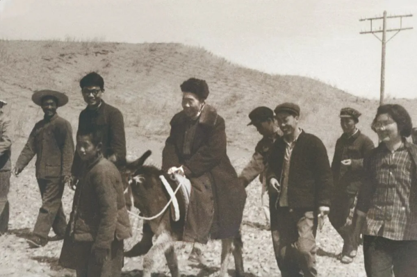 1964年,劉慎諤騎著毛驢在西北檢查治沙試驗工作。