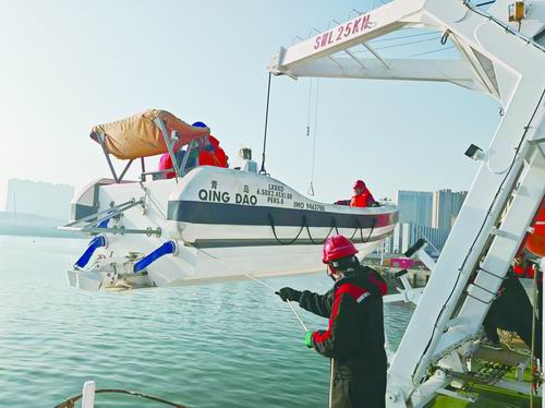 “科學(xué)”號(hào)工作艇正在進(jìn)行測試。廖洋/攝