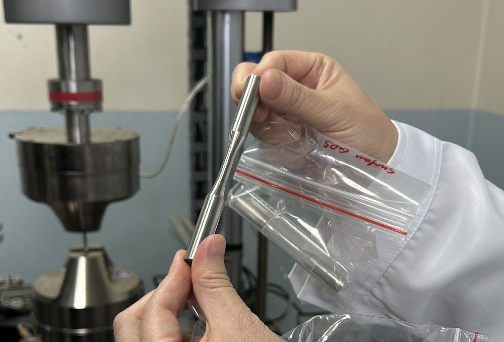 科研人員展示經(jīng)加工改造后的金屬材料樣品。新華社記者劉禎 攝