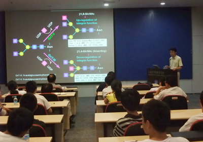 8月19日,日本東北藥科大學(xué)顧建國(guó)教授應(yīng)邀訪問(wèn)中科院大連化學(xué)物理研究所,并在生物技術(shù)部做了題為“Importance of N-glycan on Cell Adhesion and Migration and Related Disease”的學(xué)術(shù)報(bào)告,馬小軍研究員主持了報(bào)告會(huì)。報(bào)告會(huì)上,顧建國(guó)教授針對(duì)N-糖基化修飾在細(xì)胞生物學(xué)基礎(chǔ)研究及臨床意義上的研究進(jìn)展做了詳細(xì)闡述,大連化物所相關(guān)研究人員和研究生聽(tīng)取了報(bào)告并與顧建國(guó)教授進(jìn)行了深入的交流。