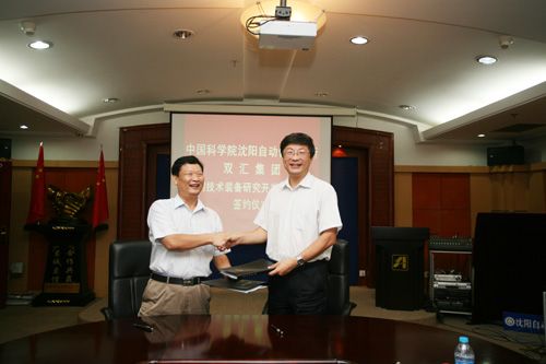 簽約儀式上,王越超所長對李紅偉總經(jīng)理訪問沈陽自動化所一行表示熱烈歡迎,并對雙匯集團(tuán)兩年多來對合作項目的大力支持和促進(jìn)表示感謝。王越超所長詳細(xì)介紹了沈陽自動化所的科研工作及取得的成果,強(qiáng)調(diào)了沈陽自動化所研究工作側(cè)重于應(yīng)用的特點,非常盼望與企業(yè)的合作,希望能夠為企業(yè)提供新技術(shù)的研究開發(fā),解決企業(yè)在發(fā)展過程中遇到的重大科技問題。