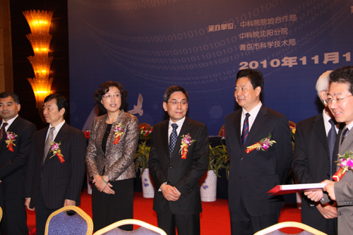 2010年11月10-12日,由中國科學(xué)院與青島市政府聯(lián)合主辦,中科院院地合作局、中科院沈陽分院、青島市科學(xué)技術(shù)局承辦的“2010中國 青島產(chǎn)學(xué)研合作洽談會(huì)”在青島舉行。中科院副院長(zhǎng)施爾畏,院地合作局局長(zhǎng)戚強(qiáng)、沈陽分院副院長(zhǎng)韓恩厚,山東省科技廳副廳長(zhǎng)、中科院山東中心主任王曉斌,山東省委常委、青島市委書記李群,市委常委、副市長(zhǎng)張惠、市委秘書長(zhǎng)王魯明等領(lǐng)導(dǎo)出席了開幕式及簽約儀式。施爾畏副院長(zhǎng)和張惠副市長(zhǎng)分別致辭。