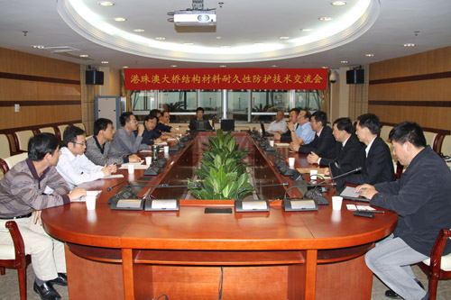 盧柯所長和柯偉院士與業(yè)主、設(shè)計院及有關(guān)專家進行了廣泛的交流,就港珠澳大橋結(jié)構(gòu)材料耐久性問題進行了全面討論,對即將開始的試樁工程提出了具體的建議,確保工程萬無一失。