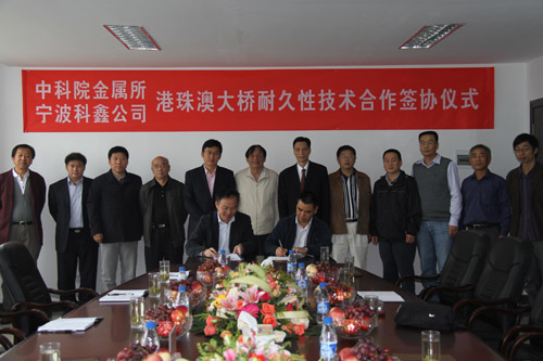 隨后,盧柯所長、柯偉院士等金屬所領(lǐng)導(dǎo)、專家還參觀考察了寧波科鑫公司(珠海)大橋防腐基地,并與科鑫公司簽訂了《港珠澳大橋耐久性防護項目合作協(xié)議》。