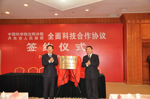 4月17日,中國科學(xué)院沈陽分院與丹東市人民政府全面科技合作協(xié)議簽約儀式在丹東賓館隆重舉行。中國科學(xué)院院長、黨組書記白春禮,丹東市委書記戴玉林在簽約儀式上講話并共同為中國科學(xué)院沈陽國家技術(shù)轉(zhuǎn)移中心丹東中心揭牌。沈陽分院院長包信和,丹東市委副書記、市長趙連生代表院市雙方在全面科技合作協(xié)議上簽字。簽約儀式由丹東市委副書記李樹民主持,沈陽分院副院長梁波代表雙方匯報了市院合作情況。
