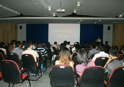 在生物樓學(xué)術(shù)報告廳,副所長馮埃生首先向前來參觀的同學(xué)們表示熱烈的歡迎,同時希望通過此項活動增進(jìn)彼此之間的交流,使臺灣學(xué)子加深對祖國大陸科研工作及其他各方面工作的了解,并寄望海峽兩岸的青年學(xué)子攜起手來,共同為中華民族的繁榮富強貢獻(xiàn)出自己的力量。隨后,同學(xué)們觀看了我所簡介專題片。