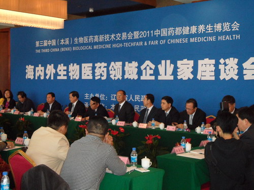 2011年11月月11日,由遼寧省人民政府主辦、中國工商聯(lián)醫(yī)藥業(yè)商會(huì)、本溪市人民政府等聯(lián)合承辦的第三屆中國(本溪)生物醫(yī)藥高新技術(shù)交易會(huì)暨中國藥都健康養(yǎng)生博覽會(huì)(以下簡稱藥交會(huì))在本溪高新技術(shù)產(chǎn)業(yè)開發(fā)區(qū)舉行,沈陽分院組織系統(tǒng)內(nèi)大連化學(xué)物物理研究所、沈陽應(yīng)用生態(tài)研究所參加了本屆藥交會(huì),遴選了“治療老年癡呆癥新藥開發(fā)”等5個(gè)項(xiàng)目參展。分院參會(huì)代表參加了開幕式、省長與企業(yè)、科研院所座談等活動(dòng)。