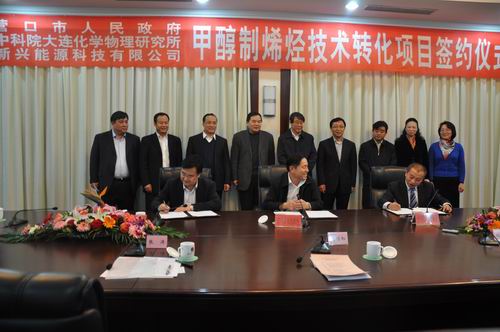 2011年12月8日下午,大連化學物理研究所、新興能源科技有限公司與營口市政府舉行了甲醇制烯烴技術轉化簽約儀式。沈陽分院院長包信和、大連化學物理研究所所長張濤、副所長劉中民,營口市市委書記魏小鵬、代市長葛樂夫、副市長唐心恩、蓋州市委書記王慶珂等出席簽約儀式。