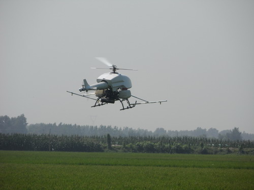 無人直升機是一種無人駕駛的直升機系統(tǒng),可以通過機上的飛行控制系統(tǒng)自動按照預定的任務進行飛行并返回降落地點。比起其他飛行器,具有垂直起降、定點懸停等特點,特別適合于農(nóng)業(yè)施藥這種起降場地受限、超低空飛行類的應用。中科院沈陽自動化所自2003年就開始無人直升機自主控制研究,到現(xiàn)在為止已經(jīng)研制出可攜帶10kg、30kg載荷的無人直升機系統(tǒng),可廣泛應用于緊急救援、輸電線路的巡檢與架設、農(nóng)業(yè)作業(yè)、災情勘測、航空拍攝等。此次試驗的是沈陽自動化所研制的30kg載荷無人直升機施藥系統(tǒng),可完成每小時60-100畝的作物噴灑。噴灑時只需輸入農(nóng)田區(qū)域信息、風力信息及設定噴灑藥量,便可實現(xiàn)噴灑全過程無人員操作、施藥量可控噴灑,具有高效、精準、環(huán)保、易用等優(yōu)勢。無人直升機系統(tǒng)在農(nóng)業(yè)上有廣泛應用領域,在解決勞動力匱乏、減輕勞動強度、減少農(nóng)藥用量、精準作業(yè)等方面展示了充分的優(yōu)勢。但由于目標客戶匱乏、經(jīng)驗數(shù)據(jù)不足,遲遲沒有實現(xiàn)產(chǎn)業(yè)化。