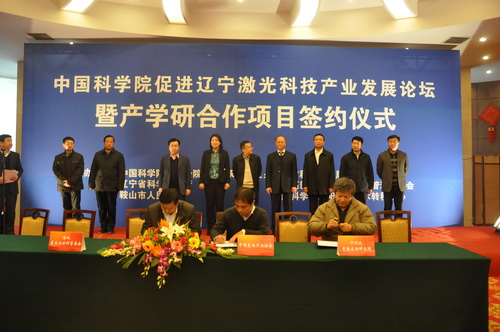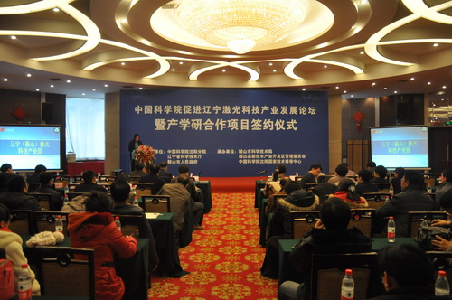 12月14日,中科院促進遼寧激光科技產業(yè)發(fā)展論壇暨產學研合作項目簽約儀式在鞍山勝利賓館隆重召開。會議由中科院沈陽分院、遼寧省科技廳、鞍山市人民政府聯(lián)合主辦,沈陽分院副院長馬越紅、遼寧省科技廳副廳長孟慶海、鞍山市副市長張世超,中科院相關研究所、鞍山市科技局、發(fā)改委、財政局、高新區(qū)管委會、開發(fā)區(qū)管委會、海城市人民政府及相關企業(yè)代表100余人參加會議。