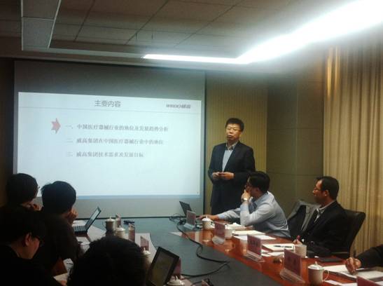 2014年4月28日,山東威高集團張華威總裁一行在沈陽分院院長助理、山東中心主任徐巖的陪同下到中科院生物物理所調(diào)研,尋求戰(zhàn)略合作。中科院生物物理所黨委書記、副所長汪洪巖,所長助理畢利軍,科技合作與成果轉(zhuǎn)化處、科學(xué)技術(shù)處的負責(zé)人以及相關(guān)實驗室的負責(zé)人和研究人員20余人參加了交流座談。