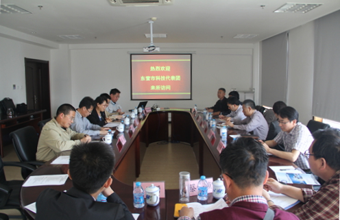 2015年5月14日,在沈陽(yáng)分院科技處副處長(zhǎng)、山東中心常務(wù)副主任王東升陪同下,東營(yíng)市科技局副局長(zhǎng)李樹坤率領(lǐng)東營(yíng)市部分骨干化工企業(yè)等負(fù)責(zé)人一行10人到大連化物所進(jìn)行對(duì)接和調(diào)研。