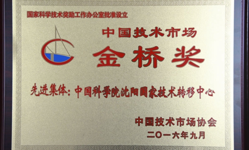 2016年11月18日,第八屆中國技術(shù)市場金橋獎頒獎大會在北京人民大會堂舉行。中國科學(xué)院沈陽國家技術(shù)轉(zhuǎn)移中心因在構(gòu)建院地合作網(wǎng)絡(luò)體系、提升遼寧區(qū)域創(chuàng)新能力、服務(wù)地方產(chǎn)業(yè)集群發(fā)展、推動高端智庫建設(shè)、推動項目轉(zhuǎn)移轉(zhuǎn)化、踐行科普社會責(zé)任等方面開展了卓有成效的工作,榮獲“第八屆中國技術(shù)市場金橋獎先進集體獎”。沈陽國家技術(shù)轉(zhuǎn)移中心在遼寧已經(jīng)與大連、鞍山、丹東、營口等地市共建了9個分中心,目前已有41人專業(yè)從事與中科院的科技成果轉(zhuǎn)移轉(zhuǎn)化工作,已經(jīng)成為遼寧省科技成果轉(zhuǎn)化的重要力量。