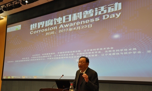 活動中,世界腐蝕組織主席、中國科學院沈陽分院院長、中國科學院金屬研究所研究員韓恩厚為社會公眾做了題為“腐蝕--人類的重要課題”的精彩報告。他從什么是腐蝕、腐蝕給我們?nèi)粘I顜淼耐{、對國家的重大工程如航天、核電、油氣、高鐵和橋梁等造成的重要影響,以及如何控制和利用腐蝕等方面進行了全面的介紹。