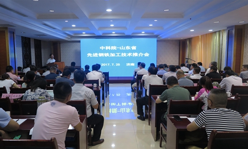 為了落實(shí)中科院和山東省全面合作協(xié)議,加快推動(dòng)山東省鋼鐵行業(yè)和高端制造業(yè)的新舊動(dòng)能轉(zhuǎn)換,7月25日,沈陽分院和山東省科技廳在山東濟(jì)南共同組織召開了“先進(jìn)鋼鐵加工技術(shù)推介會(huì)”。中國科學(xué)院院士李依依,中科院沈陽分院院長韓恩厚、副院長馬越紅,金屬研究所副所長譚若兵、山東省科技廳副廳長于書良,以及來自山東各地市科技系統(tǒng)、山東中心各分中心負(fù)責(zé)人、重點(diǎn)企業(yè)負(fù)責(zé)人、新聞媒體等150余人參加了會(huì)議。