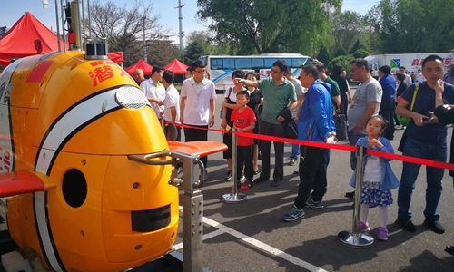 在沈陽自動化研究所,推出了建所60年主題展和機器人成果展,兩款水下機器人以實物的方式首次與社會公眾見面。一款是今年4月成功完成海試和試驗性應用潛次的“潛龍三號”自主水下機器人。另一款是我國自主研制的首套6000米級遙控潛水器裝備(ROV)。“海翼”號水下滑翔機、“潛龍一號”和“潛龍二號”自主水下機器人、地震救援機器人、蛇形機器人和新松公司智能服務機器人分別以實物或模型的形式亮相。針對不同年齡段的受眾,沈陽自動化所組織舉行了多場科普報告,光電信息技術研究室副主任、研究員、博士生導師朱楓作了題為《機器視覺——機器人的火眼金睛》的報告,講解了機器人、機器視覺概念,介紹了機器視覺的應用和沈陽自動化所的相關研究成果。空間自動化技術研究室副研究員、碩士生導師、中科院青年創(chuàng)新促進會會員宋屹峰以《人、機器、機器人》為題作報告,從機器人、工業(yè)機器人、特種機器人、機器人未來4個故事入題講述了機器人的發(fā)展歷程和相關知識。此外,沈陽自動化所針對小學及學齡前兒童安排研究生分別講解了多場機器人科普報告?;顒悠陂g,還向來參加活動的公眾發(fā)放了參觀護照,集印章換取紀念品,得到前來參加活動的小科技迷們的踴躍參與。