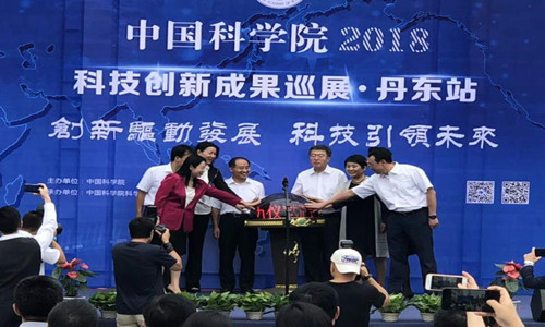 2018年9月3日上午,“中國科學(xué)院2018年創(chuàng)新成果巡展﹒丹東站”開幕式在丹東新區(qū)美術(shù)館舉行,丹東市委書記葛海鷹、中國科學(xué)院科學(xué)傳播局局長周德進(jìn)、中國科學(xué)院沈陽分院副院長馬越紅出席開幕式并講話,參加開幕式的還有中國科學(xué)院文獻(xiàn)情報中心副主任潘亞楠、丹東市人大常委會副主任于梅、丹東市政協(xié)副主席唐亮,開幕式由丹東市副市長潘爽主持。