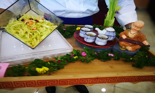 來自系統(tǒng)9家單位的21名廚師全身心投入,匠心獨具,以嫻熟的刀工及獨特的創(chuàng)新,紛紛亮出自己的絕活,展現(xiàn)了精湛的廚藝。比賽邀請了中華金廚獎獲得者、遼寧省烹?yún)f(xié)名廚委員會副主席春祥遼菜樓總經(jīng)理陳志偉老師作為嘉賓逐一點評。最終青島生物能源所代表隊獲得一等獎并將代表沈陽分院參加院里的廚藝大賽。沈陽生態(tài)所、海洋所、沈陽科儀公司代表隊獲得二等獎,其他代表隊獲得三等獎。