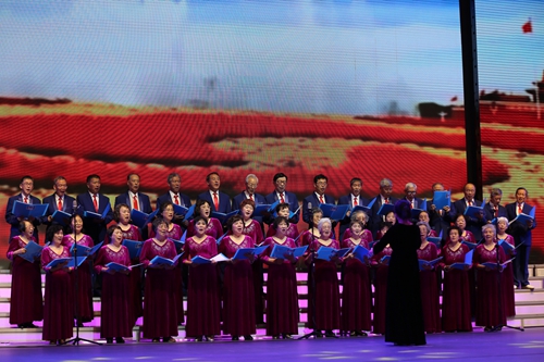 文藝匯演在開(kāi)場(chǎng)舞《親吻祖國(guó)》中拉開(kāi)序幕。整場(chǎng)演出共計(jì)十五個(gè)節(jié)目,以大合唱、女生小合唱、男生獨(dú)唱、舞蹈、太極表演等多種形式歌唱祖國(guó)、抒發(fā)對(duì)祖國(guó)的熱愛(ài)之情,節(jié)目精彩紛呈。沈陽(yáng)分院在職職工和誼佳公司職工20余人也現(xiàn)場(chǎng)合唱了《我和我的祖國(guó)》,與老同志們共同歡慶節(jié)日,并向老同志們送上節(jié)日祝福。最后馬越紅、郭秀銀、謝光鋒、郝欣和桑子剛一起走上舞臺(tái)揮動(dòng)五星紅旗,與全體演職人員共同唱響《我和我的祖國(guó)》,全場(chǎng)臺(tái)上臺(tái)下一片沸騰成了歡樂(lè)的海洋,將演出活動(dòng)推向高潮。