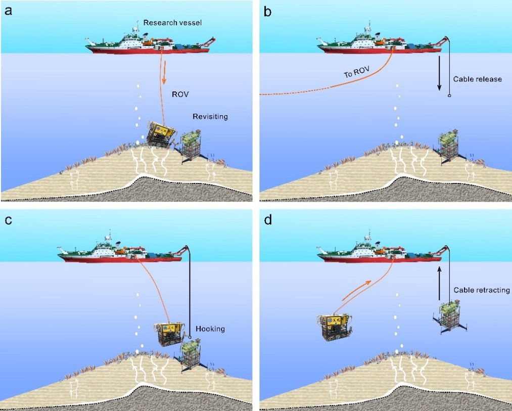 為此,研究團(tuán)隊(duì)突破水下耐腐蝕技術(shù)、能源管理技術(shù)等關(guān)鍵技術(shù),探索新型水下布放及回收模式,研制了多代深海坐底長期觀測系統(tǒng)(Long-term ocean observation platform, LOOP),實(shí)現(xiàn)了對觀測區(qū)域高清影像資料、近海底理化參數(shù)及保壓流體樣品等數(shù)據(jù)樣品的綜合獲取。