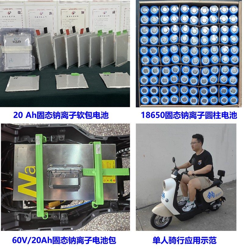 基于上述研究基礎(chǔ)和技術(shù)積累,經(jīng)過十余年的努力,崔光磊研究員帶領(lǐng)的固態(tài)能源系統(tǒng)技術(shù)中心成功研制出低成本、高安全、高性能的固態(tài)鈉離子電池。目前研發(fā)的固態(tài)鈉離子電池電芯能量密度超140 Wh/kg,電池模組比能量密度超110 Wh/kg;具有超高安全性,可以通過針刺測試,不冒煙、不燃燒、不爆炸,已實現(xiàn)在二輪電動車的示范應(yīng)用(圖2)。未來,該團隊將按照不同應(yīng)用場景,重點瞄準(zhǔn)低速電動車、新能源汽車48 V電源系統(tǒng)、家庭儲能等領(lǐng)域,持續(xù)開發(fā)滿足市場系列鈉離子電池關(guān)鍵材料和核心技術(shù)。