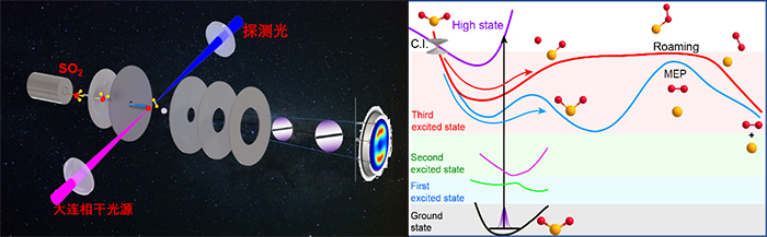 近日,中國科學院大連化學物理研究所分子反應動力學國家重點實驗室研究員袁開軍、中國科學院院士楊學明實驗團隊聯(lián)合研究員傅碧娜、中國科學院院士張東輝理論團隊,在分子光化學研究領域取得重要進展,利用大連光源發(fā)現(xiàn)了二氧化硫分子高激發(fā)態(tài)的漫游反應通道。