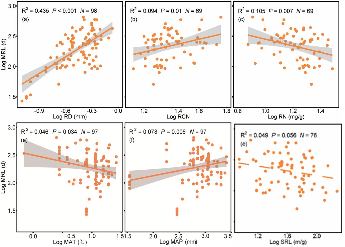 圖1 細(xì)根壽命與細(xì)根功能性狀之間的關(guān)系。