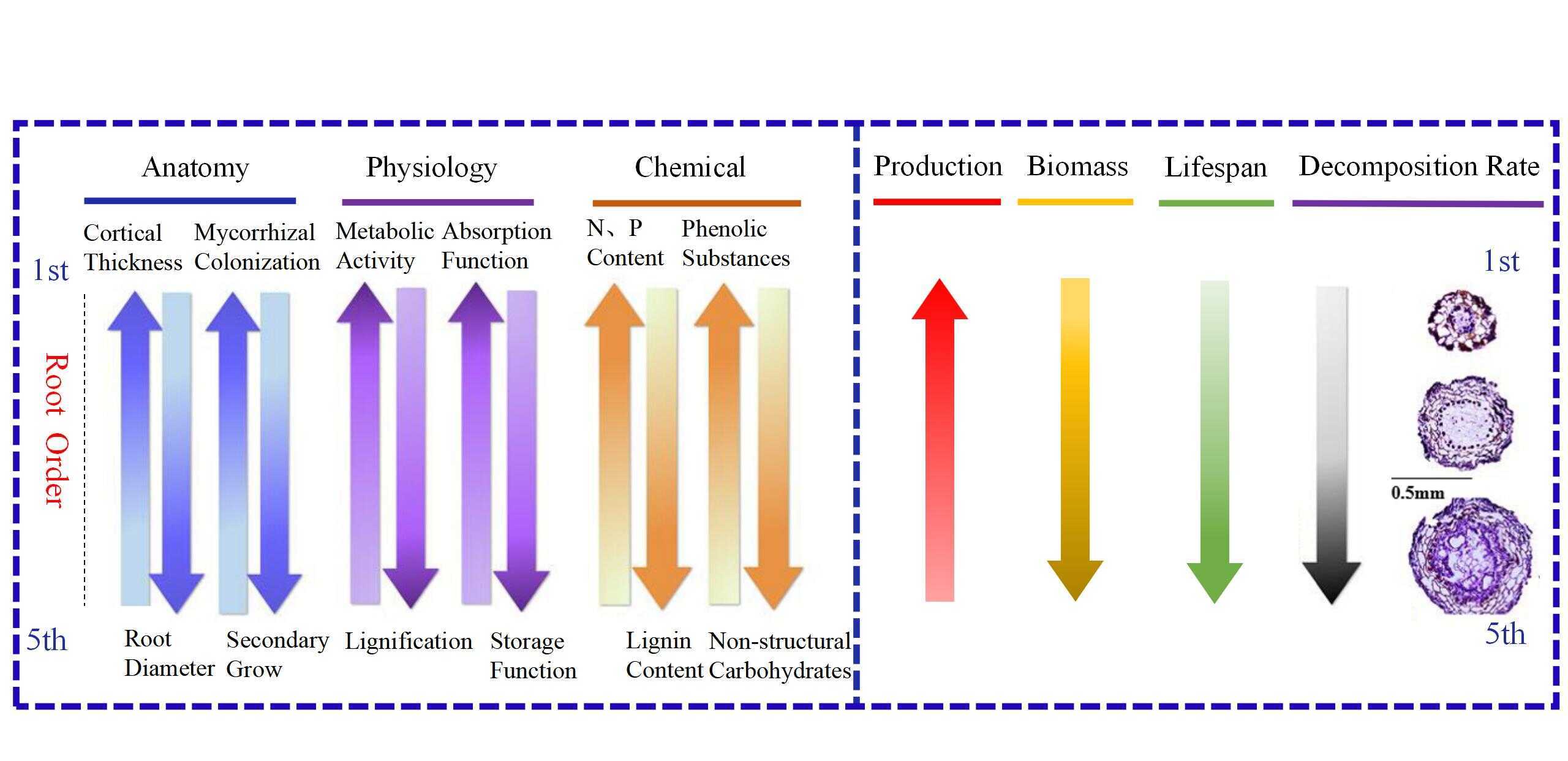 我國是全球人工林面積最大的國家,但存在樹種組成單一、地力衰退等林業(yè)問題,其服務(wù)功能不能滿足國家戰(zhàn)略需求。該研究成果可為我國人工林地力提升與土壤培育提供參考。例如,未來人工林結(jié)構(gòu)優(yōu)化或造林過程中,優(yōu)先補(bǔ)植或選擇低級根密度分布較高的樹種更有利于土壤肥力和地力的提升,從而加速森林土壤碳和養(yǎng)分循環(huán)過程,促進(jìn)其生產(chǎn)-生態(tài)功能協(xié)同提升。