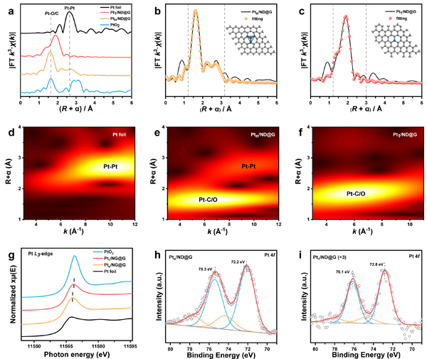 圖1.?XAFS和XPS表征。a-c EXAFS譜圖,d-f小波變換分析,g-iXPS譜圖。