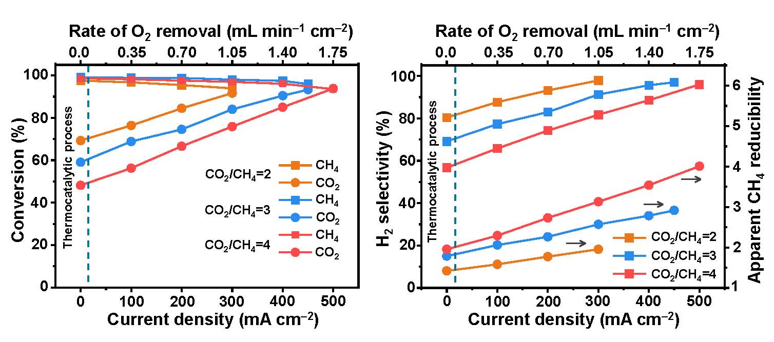 相關(guān)研究成果以“Super-dry reforming of methane using a tandem electro-thermocatalytic system”為題,發(fā)表在《自然-化學(xué)》(Nature Chemistry)上。該工作的共同第一作者是大連化物所呂厚甫博士、李榮坦博士和董雪博士。上述工作得到國家重點(diǎn)研發(fā)計(jì)劃、國家自然科學(xué)基金、遼寧濱海實(shí)驗(yàn)室等項(xiàng)目的資助。